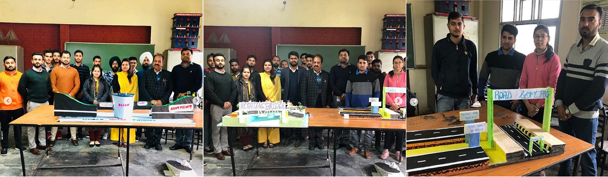 Three different models entitled "Rotating bridge" "Underwater tunnel" and "Road geometrics" has been prepared and demonstrated by Civil engineering department under DCA week..
