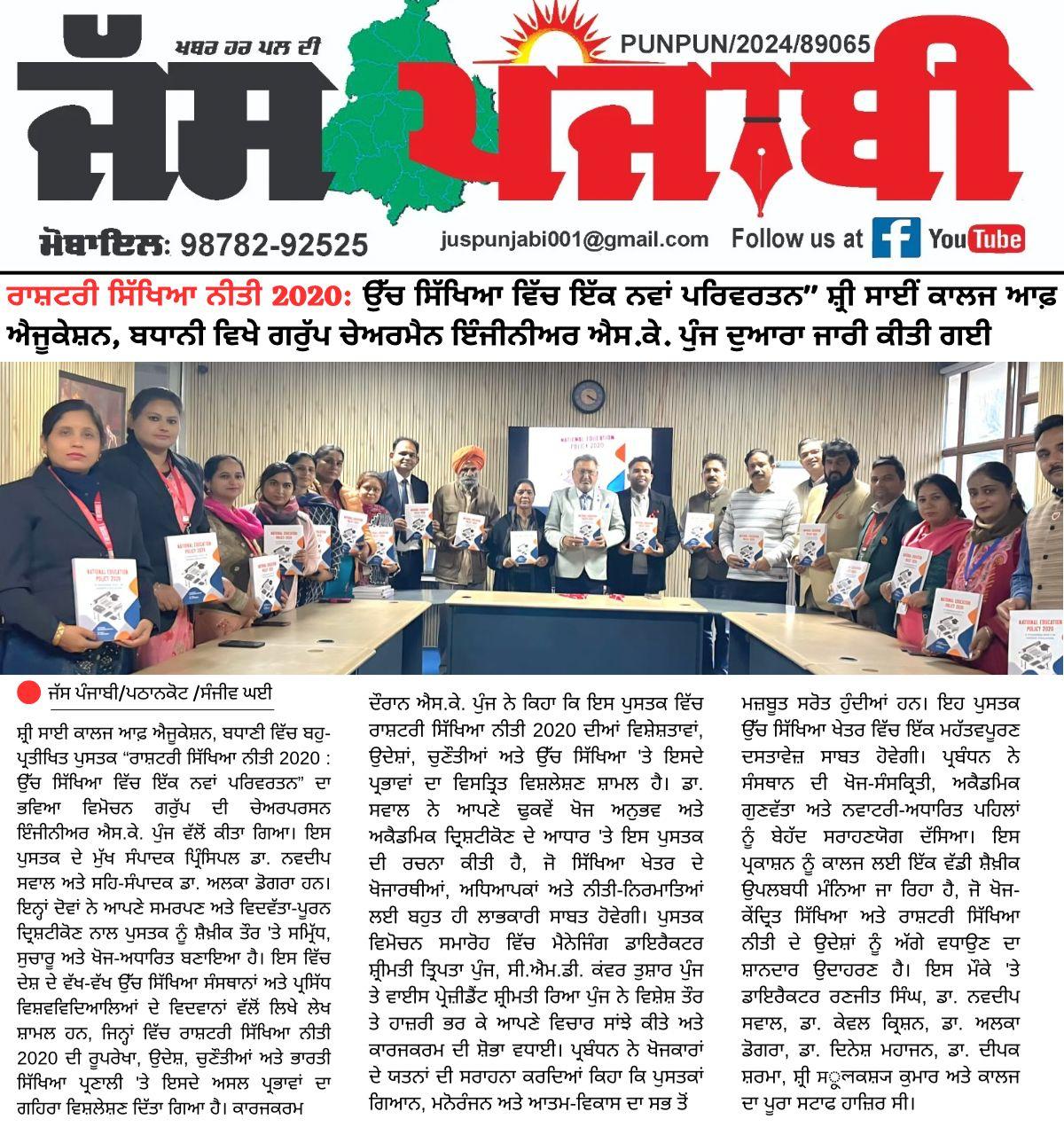 National Science Day 2025 theme, "Empowering Indian Youth for Global Leadership in Science and Innovation for Viksit Bharat," highlights the need to develop young minds to fuel innovation and development.To contribute and encourage the youth in the preparation of Viksit Bharat, Sri Sai College of Education Badhani-Pathankot celebrated National Science Day-2025. Events like Power point presentation, Declamation, Poster Making, Quiz Competition were organised.